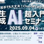 - 9/4(木)開催 デジタル苦手でも大丈夫! ChatGPTのプロが伝える生成AI超入門セミナー